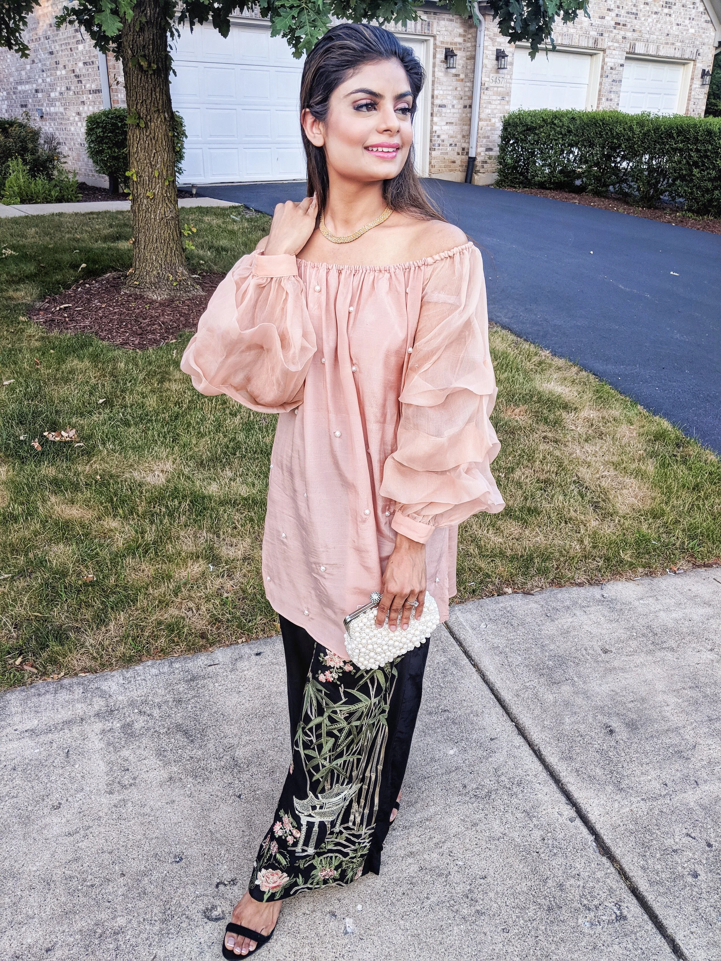 Bottoms: These embroidered wide legged black pants came with the Maria B outfit. I love these pants. The cut is beautiful, but I honestly think this top doesn't give these pants justice. You’ll see me rock these pants with a shorter top and then you’ll understand how amazing these are. For now, Maria B loves adding her funk and she’s been able to do so through these pants.