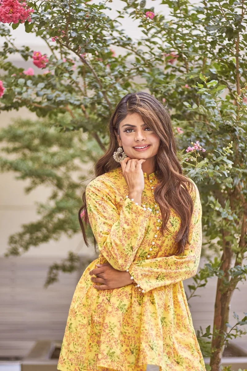 Top: I love this soft yellow peplum top by Muslima Chic. It’s the perfect fusion of Pakistani and Western fashion for the spring and summer! The pearls create a very cute and chic look, which I personally adore. Besides this beautiful cut, this top is amazing in harsh heat! Wearing long sleeves is difficult in the summer, but this fabric makes it easy. I love it and this is my favorite top from Muslima Chic’s new collection.