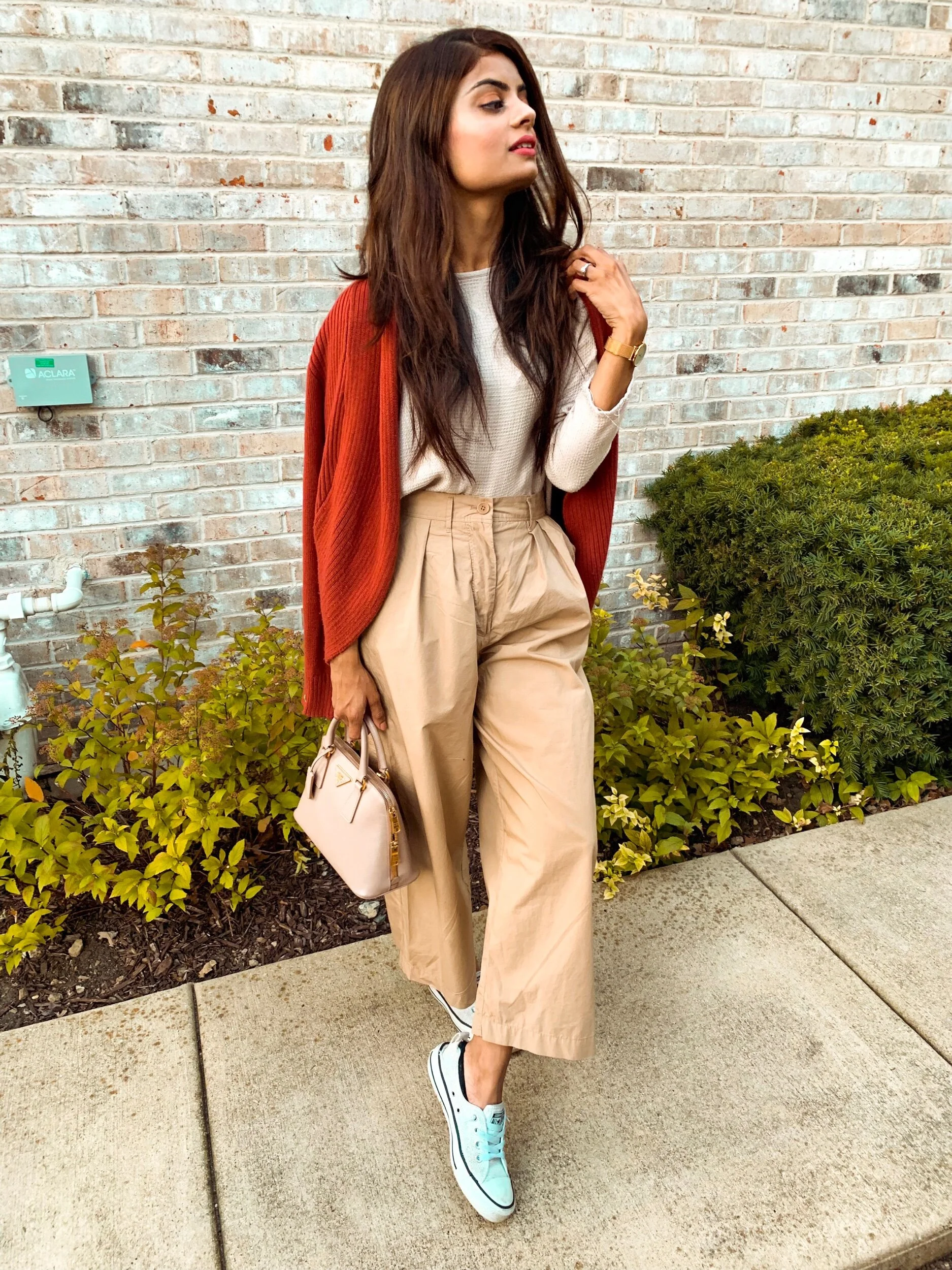 Top: I’m wearing a red cropped cardigan from H&M. I bought it years ago, so here is an alternative from Nordstrom to easily pair with. I’m rocking a cropped beige top from Zara, currently not in stock so here is another alternative from Zara.