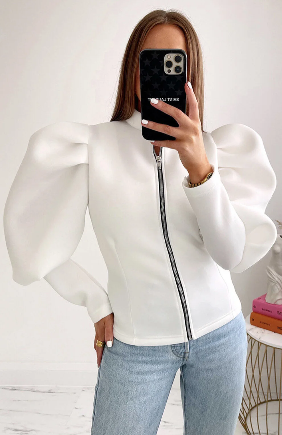 This is a statement piece because of the puff sleeves. I love puff sleeves, they’re timeless and will always bring a chic look to your fit. It’s made with a foam like material, so no need to worry about ironing, it’ll hold its structure really well. Because this is a jacket, you can style it many ways. Wear it alone and zip it up with black bottoms or skirts for a formal look, wear it with jeans for a casual look, or trouser bottoms for a trendier look. I can’t wait to style this in multiple ways, so stay tuned. Use MARIAM10 for $ off jackets.
