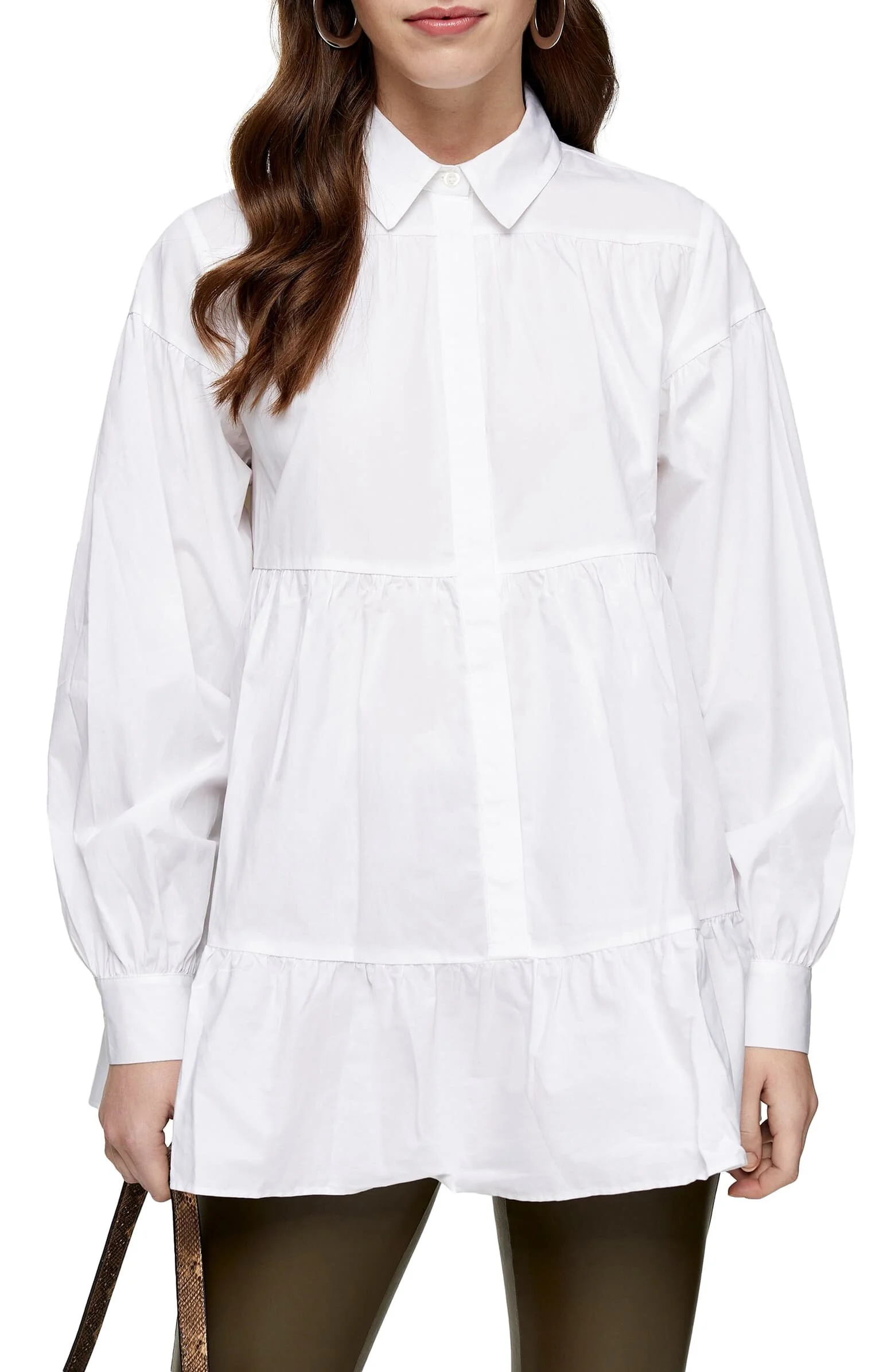 This is a trendy statement skirt. It’ll look cute with any button down top whether it’s loose and over the skirt or tucked into the skirt giving you chic vibes.