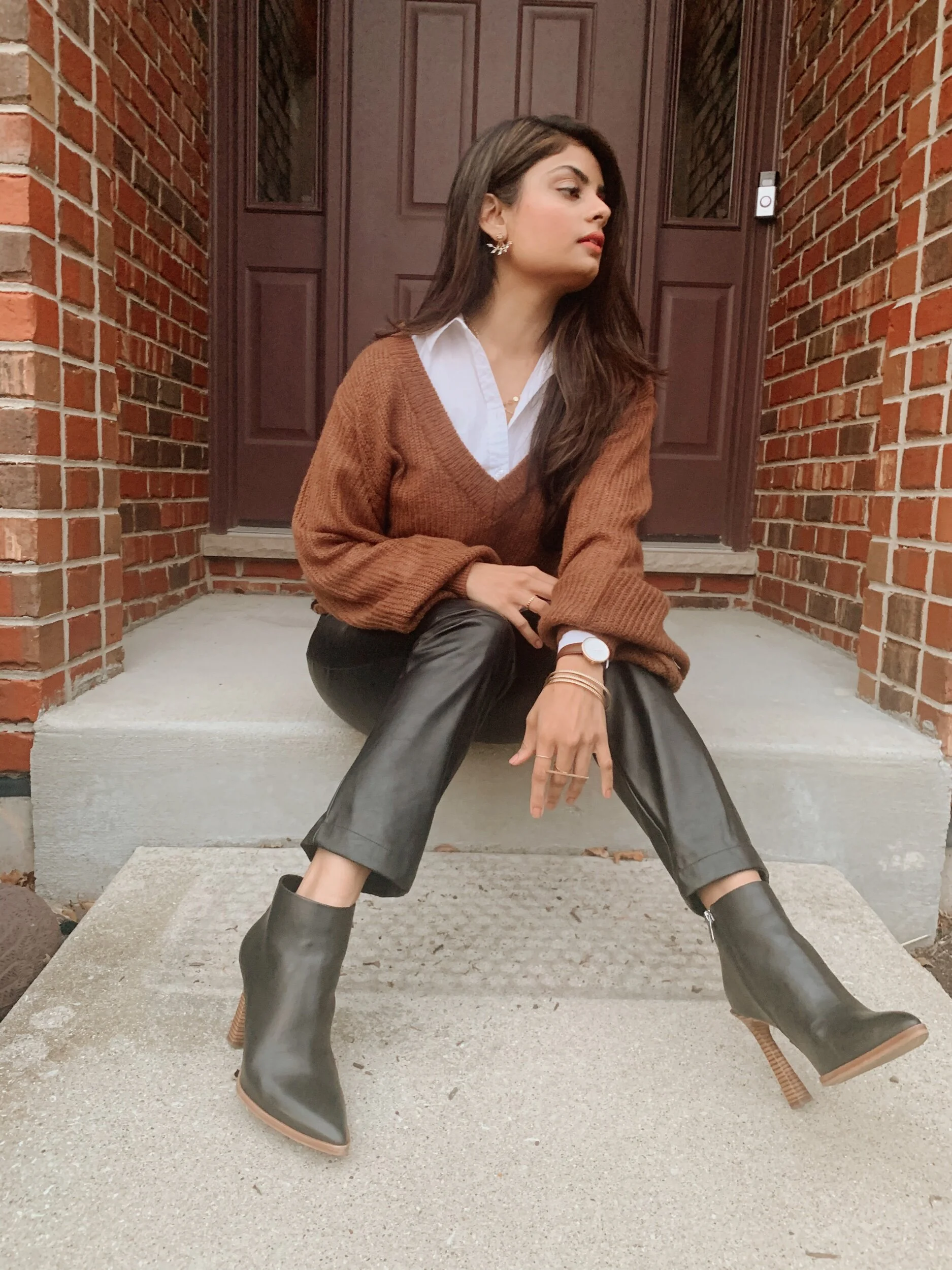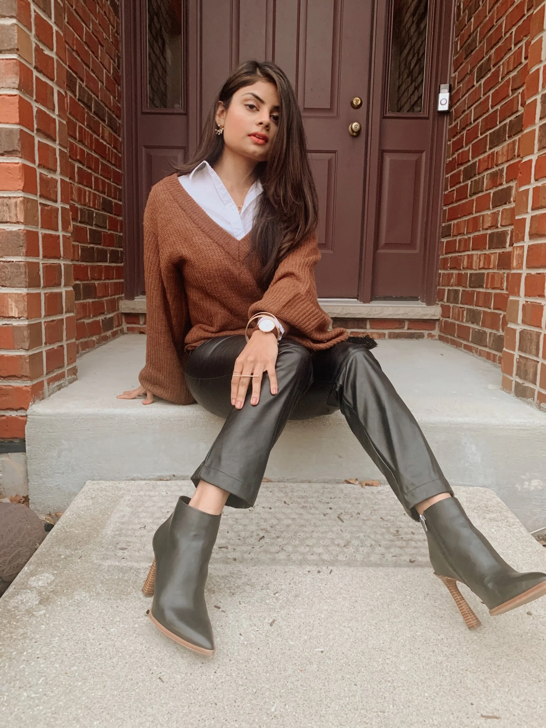 Bottoms: I’m wearing faux leather pants that I bought from Negin x Express collection. They’re really comfortable to rock and they look great to wear as pants in the winter or fall. It gives you a trendier look than your typical leather spandex.