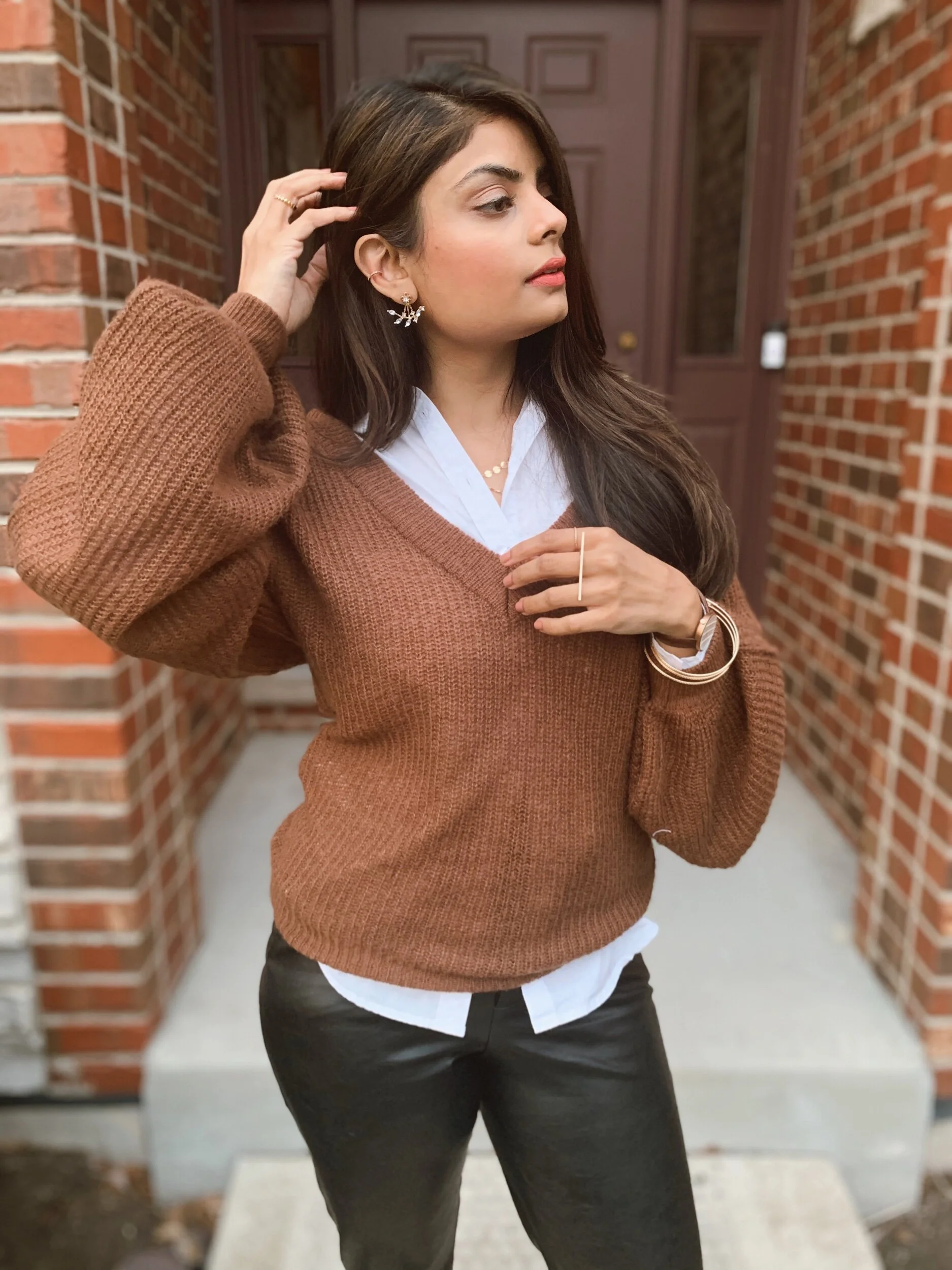 Top: I’m wearing a white button-down dress shirt from Ann Taylor, here’s a similar one from American Eagle. It’s easy to iron and lightweight, so perfect for layering. I wore one of my favorite sweaters I bought from Amazon over it. It keeps me so warm and the sleeves are my favorite part about it. Here’s a similar one from Target, brown is out of stock but I’d definitely get the style in a neutral color available.